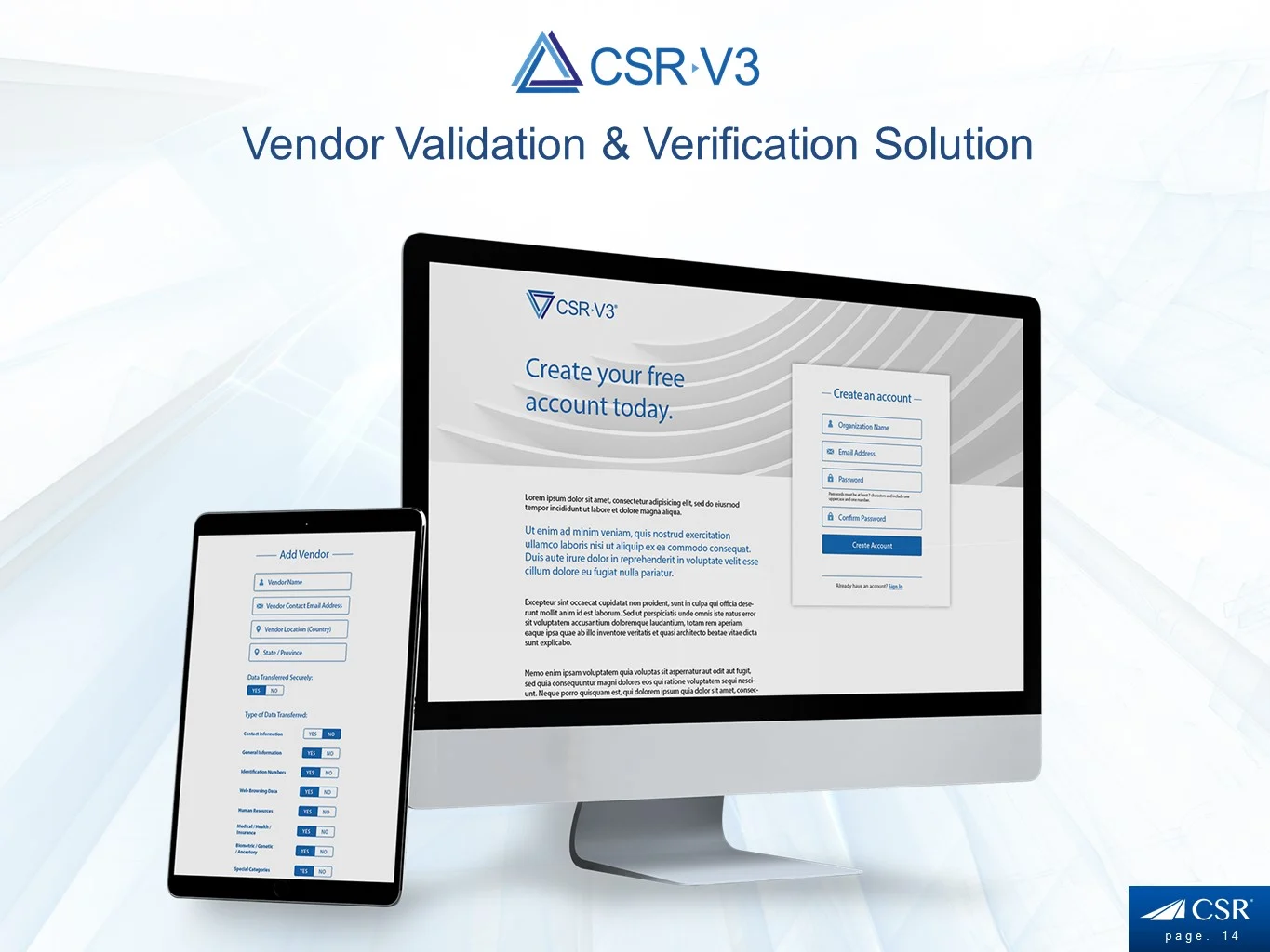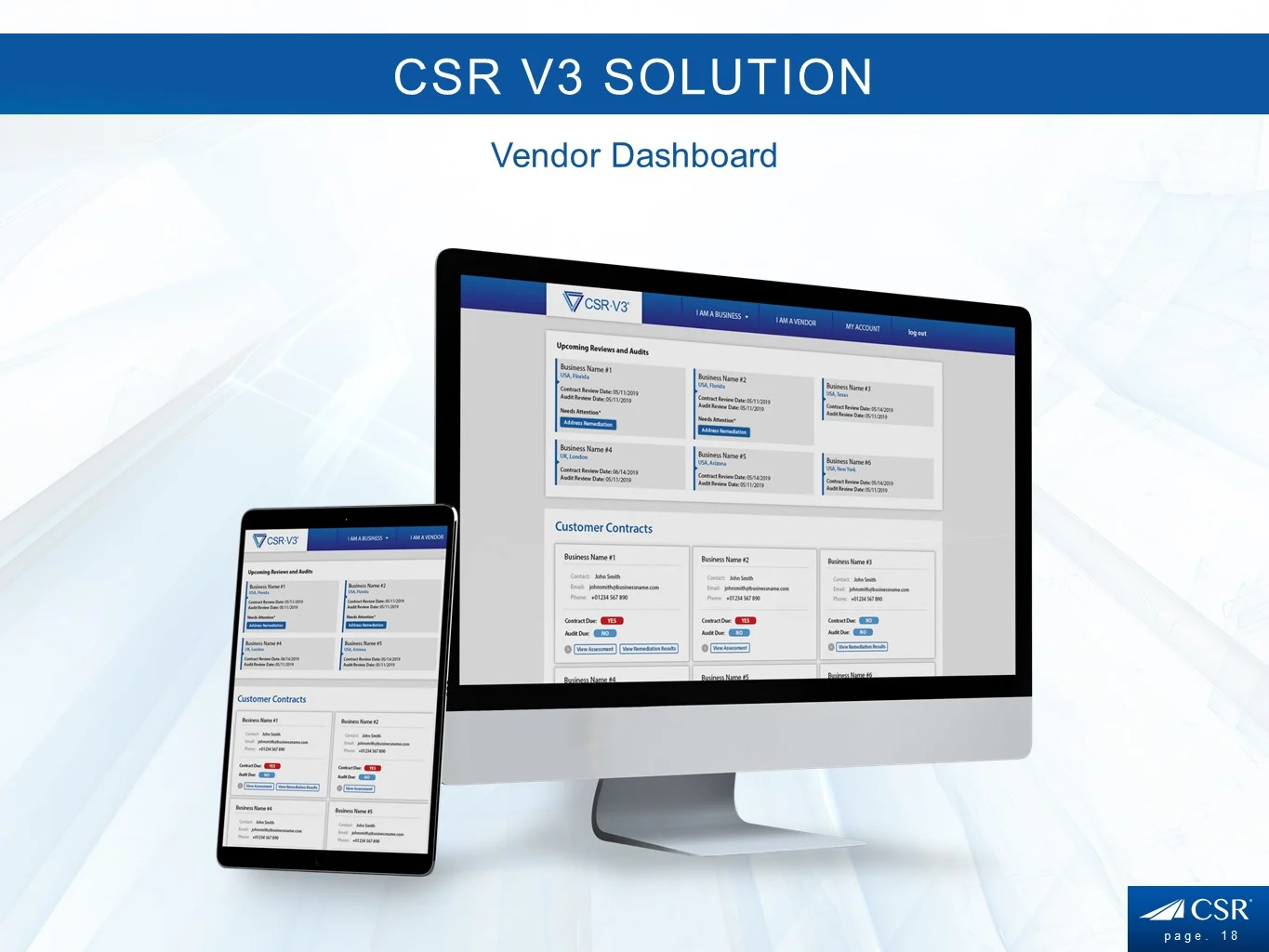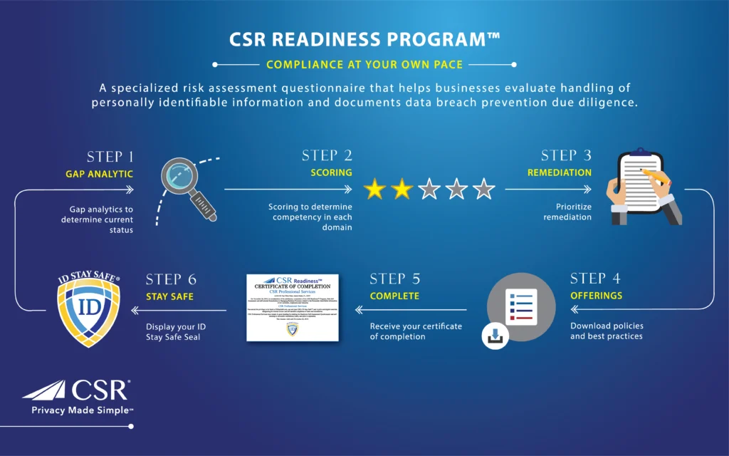 CSR Readiness® Privacy Assessment provides an SaaS (Software as a Solution) based program to improve business users’ preparedness for any security event or breach. CSR Readiness® is the premier privacy risk assessment and remediation tool designed for the Small to Medium Size Business (SMB).